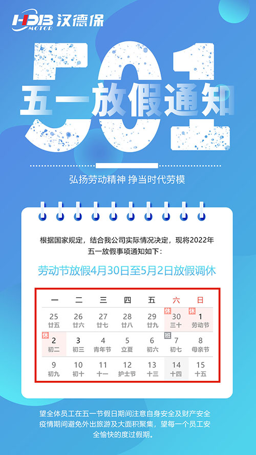 漢德保電機(jī)2022年勞動(dòng)節(jié)放假通知